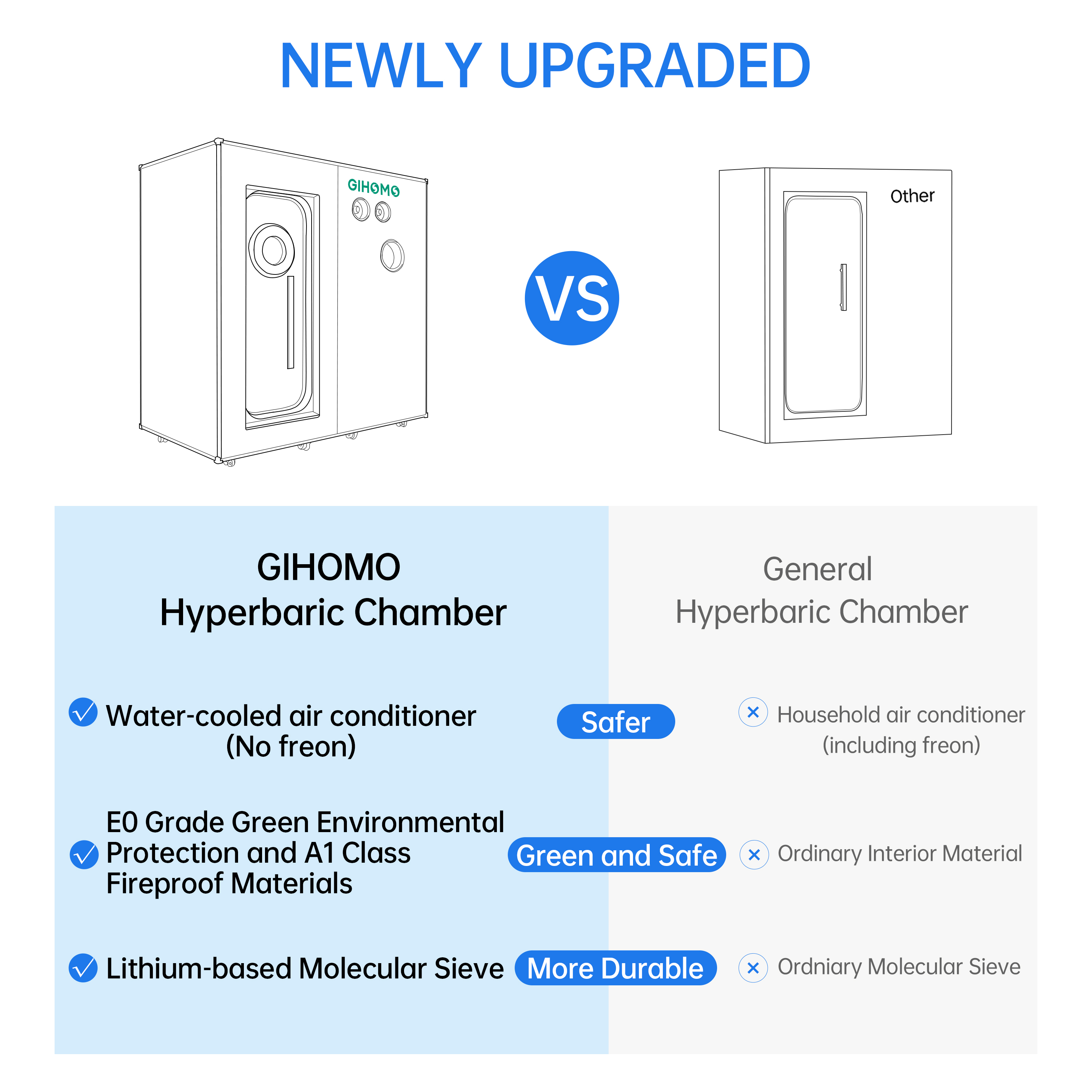 A: Yes! Our HBOT chamber features real-time air monitoring to prevent excessive CO₂ or oxygen levels in the chamber. The water-cooled AC system eliminates refrigerant leakage risks, ensuring a safe and controlled environment.
