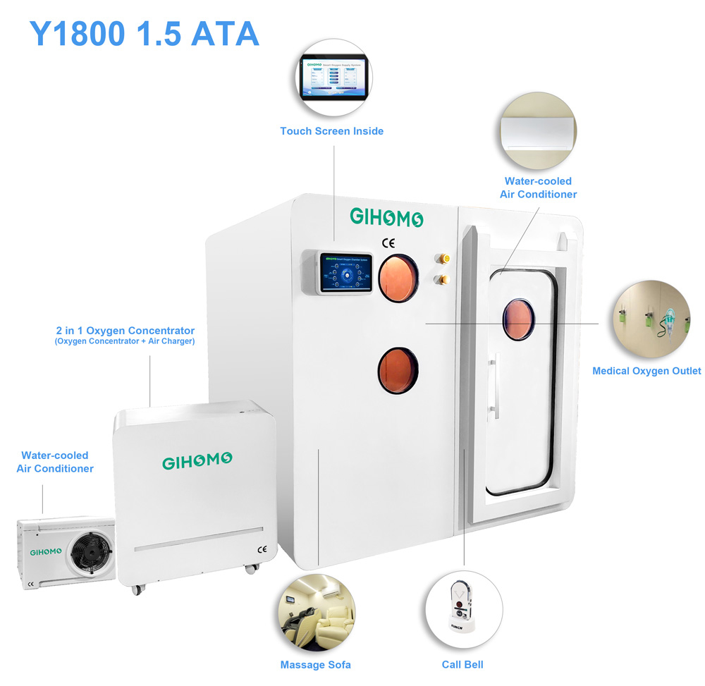 The oxygen therapy hard shell chamber can maintain the oxygen partial pressure within a safe and effective range by flexibly adjusting the pressure in the chamber, and gently and effectively improve the oxygen delivery to tissues and organs by increasing dissolved oxygen. The 1.5 ATA hard shell chamber improves the oxygen supply to the human body, stimulates cell activity, relieves cell aging, accelerates wound repair, and improves human immunity.