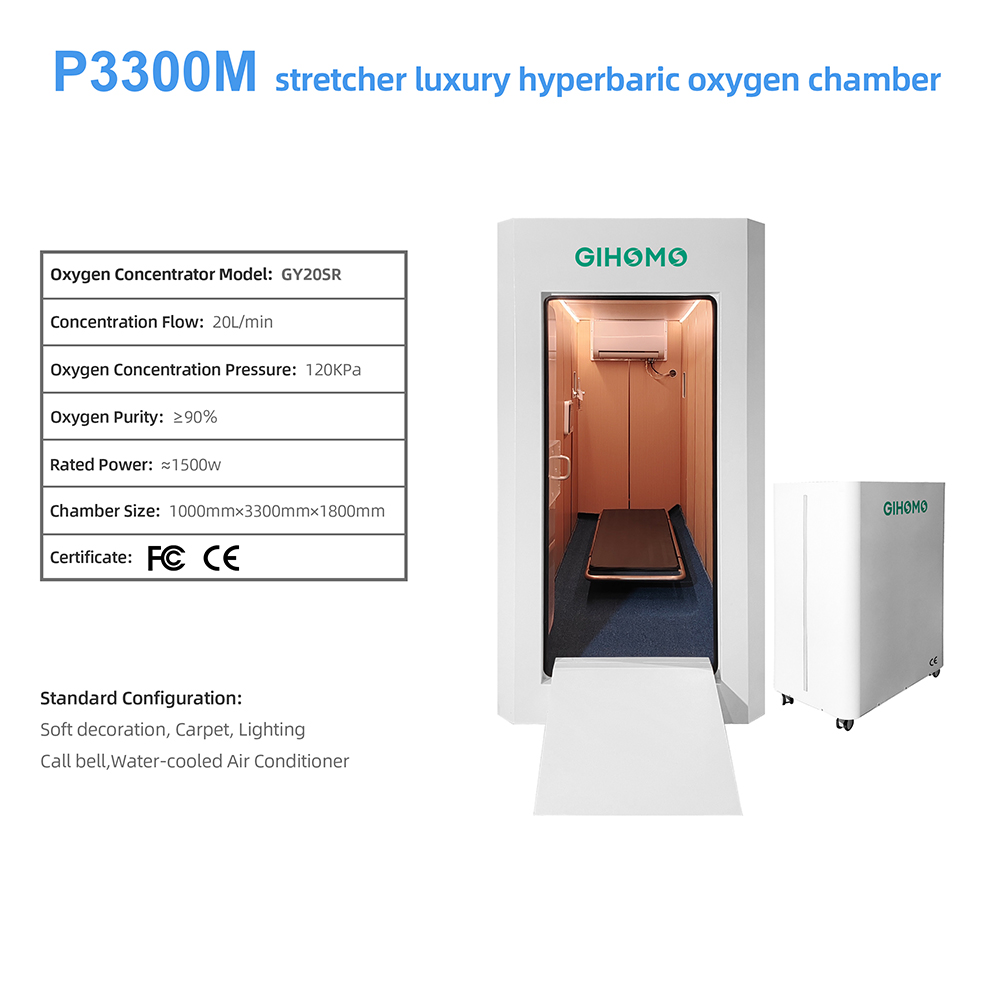 Designed to accommodate both wheelchair users and stretcher-bound patients, this hard shell HBOT chamber enables oxygen molecules to penetrate deeply into every cell of the body, accelerating tissue repair, activating cells, and supporting anti-aging effects. The integrated BIBS system ensures precise delivery of high-purity oxygen, making it an ideal solution for post-operative rehabilitation, chronic wound healing, sports recovery, and long-term wellness management. Whether for wellness center or home use, this hyperbaric chamber combines accessibility, safety, and luxury to redefine hyperbaric oxygen therapy experiences.